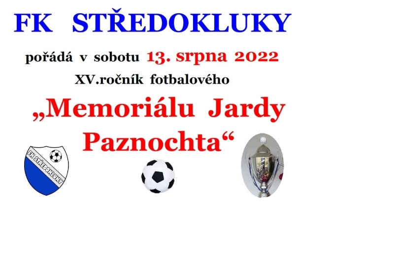 V sobotu 13. srpna 2022 pořádá FK Středokluky XV. ročník "Memoriálu Jardy Paznochta".